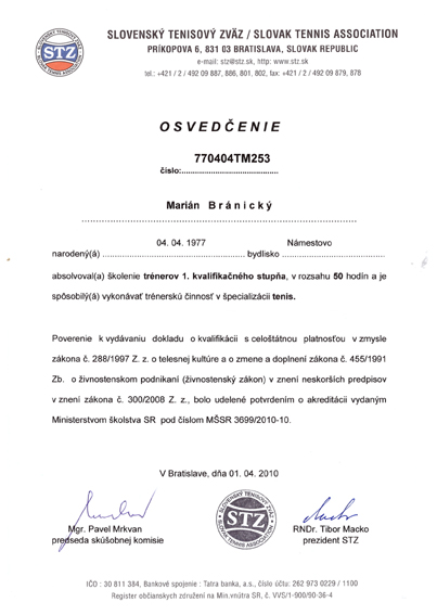 - Certified tennis trainer