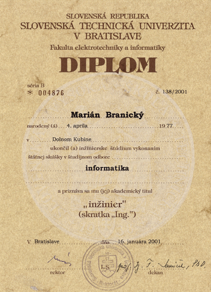 - Fakulta Elektrotechniky a Informatiky STU Bratislava, odbor informatika
