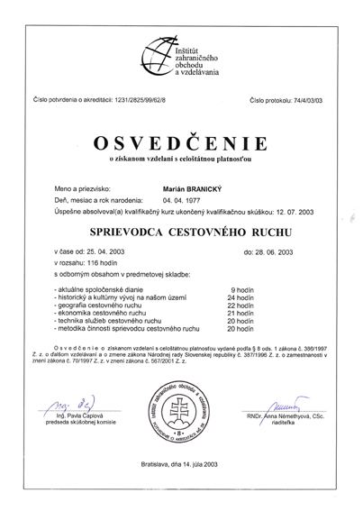 - Profesionálny lektor, tréner – december 2002