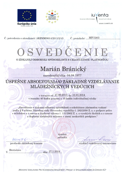 - Základné vzdelávanie mládežníckych vedúcich Iuventa